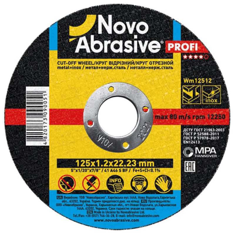 Круг отрезной NOVOABRASIVE 41 125 х 1,2 х 22,23 мм по металлу