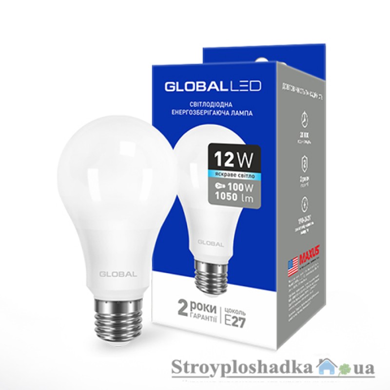 Лампа светодиодная Global, A60, 12 Вт, 4100 K, 220 В, E27 (1-GBL-166)