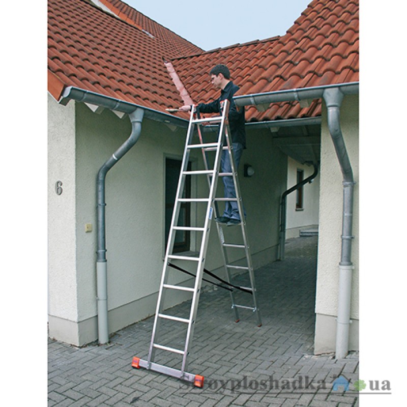 - Алюминиевая двухсекционная лестница с перекладинами имеет три практичные функции: может применяться как приставная и выдвижная лестница или как стремянка.