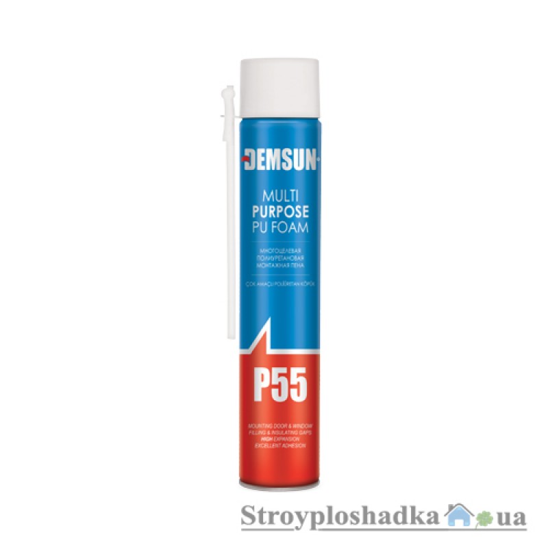 Монтажная пена Demsun Р55 - это однокомпонентная, влагоотверждаемая и саморасширяющаяся полиуретановая пена.