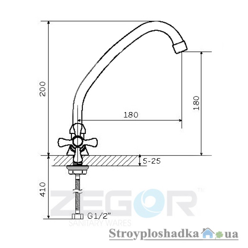 Смеситель двухвентильный для кухни с удобным креплением на гайке.