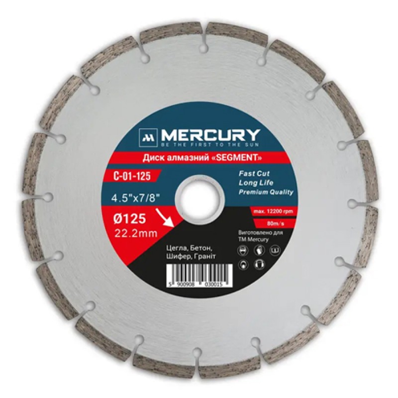 Алмазний диск SEGMENT MERCURY призначений для швидкого та ефективного різання твердих будівельних матеріалів. Сегментована кромка забезпечує високу швидкість різу та ефективне охолодження, що особливо важливо при роботі з щільними матеріалами.
