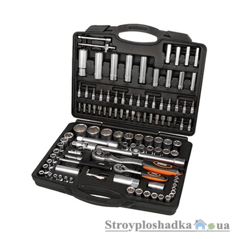 В наборе есть большое количество шестигранных головок как коротких так и длинных, насадок, трещоток для работы с ними и различных удлинителей которые помогают работать в труднодоступных местах.